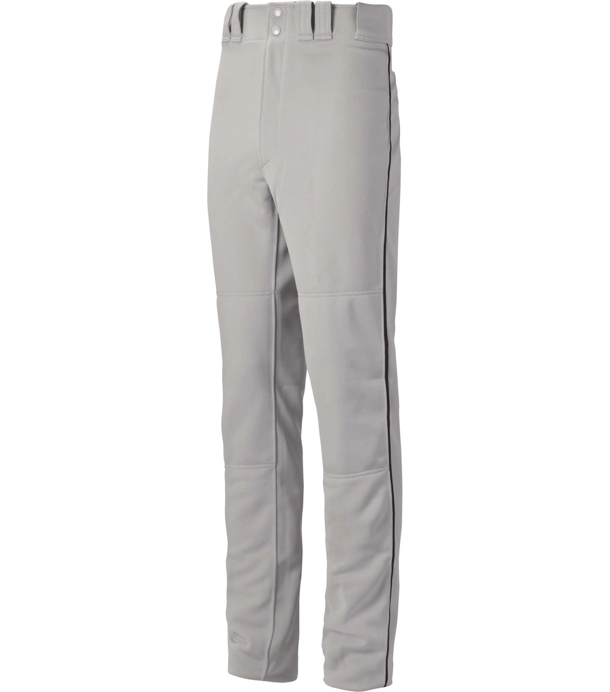 For apparel that boasts style and performance at the highest level, choose the Mizuno® MVP Pro Piped Pants for practice or game day. These adult baseball pants offer two back pockets with a button closure, a fly front design, a regular fit and open hem leg bottoms for eye-catching style and functional performance. Double knee fabric offers resistance against inevitable wear and tear, while the sleek piping detail adds a pop of color.