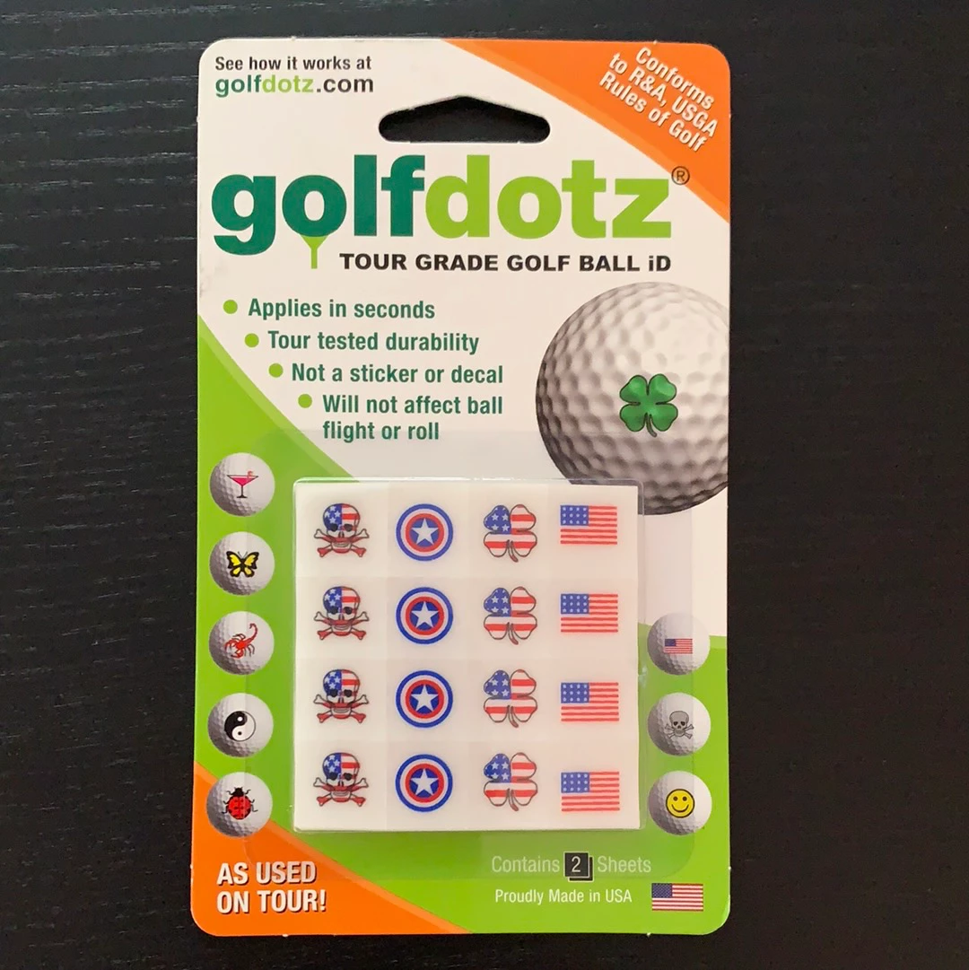 Help your golf ball stand out from the rest by applying a Transfer Studios Golfdotz Golf Ball Decal. This clean, easy-to-use golf ball marking solution securely sticks to your golf ball and lasts for up to several rounds. The USGA-compliant, low-profile design ensures your flight path and performance are not altered. Personalize your favorite golf ball with Transfer Studios Golfdotz Golf Ball Decals.